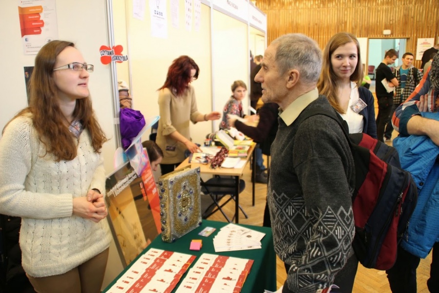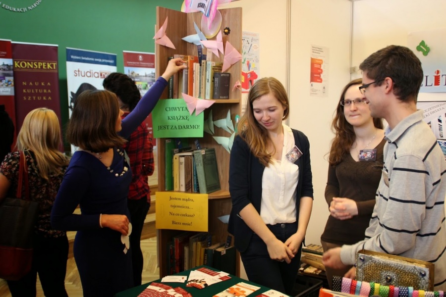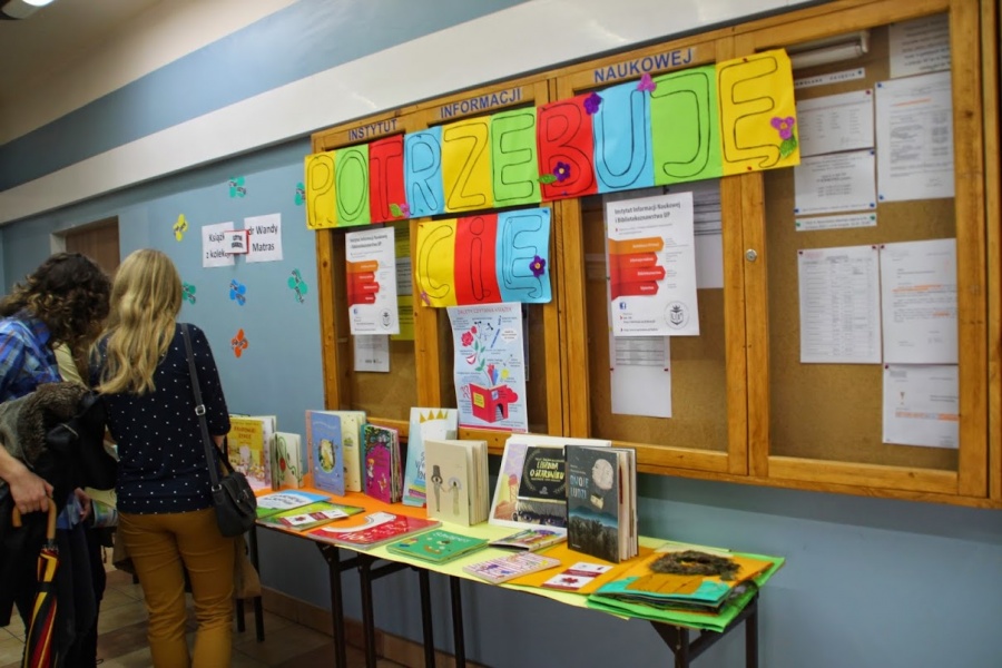 12 III 2015 r. w ramach Dnia Otwartego Uniwersytetu Pedagogicznego w Krakowie Studenci IINiB pod kierownictwem dr Wandy Matras oraz przy współpracy Zespołu ds. Promocji (reprezentowanego przez dr S. Kwiecień i dr B. Langer) oraz Kół naukowych „Bibliolog” i „Architektów Informacji” przygotowali dwa stanowiska promocyjne: w Auli Głównej (stanowisko nr 4) oraz na III piętrze budynku UP. Promocji i Instytutu towarzyszyły wykłady: dr W. Matras: „Czytaj, zobacz więcej, biblioterapia w nowoczesnym procesie edukacji” oraz „Bibliotekarski świat Hollywood” dr S. Kwiecień i dr B. Langer. Dużym zainteresowaniem cieszyły się wystawy: „Książka uczy, bawi, wychowuje” prezentująca książki multisensoryczne, obrazkowe, terapeutyczne, edukacyjne, w postaci kart kamishibai z kolekcji dr W. Matras oraz ekspozycja planszowa „Biblioteki świata”. Podczas warsztatów „Czytanie uskrzydla” powstawały piękne zakładki, oprawy, materiały zdobnicze do książek. Licealiści otrzymali profesjonalną informację na temat zalet studiowania na kierunach: Informacja Naukowa i Bibliotekoznawstwo oraz Architektura Informacji, zaś nauczyciele o możliwości podjęci studiów podyplomowych i kursów w Instytucie. Dziękujemy wszystkim osobom, które przyczyniły się do profesjonalnego przygotowania i przeprowadzenia Dnia Otwartego oraz Pani A. Szmajdzińskiej, która jest Autorką relacji fotograficznej
