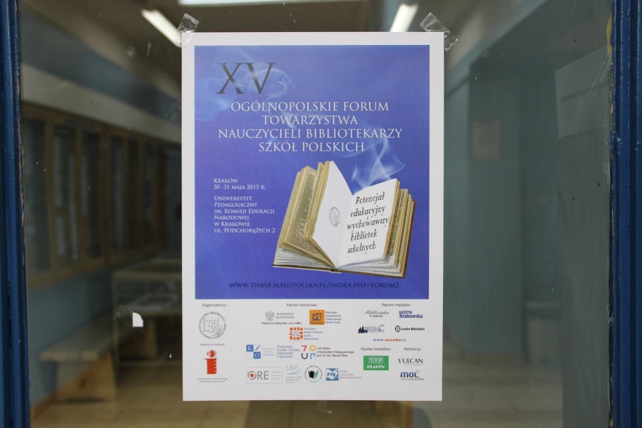 W dniach 30-31 maja 2015 r. w Uniwersytecie Pedagogicznym w Krakowie odbyło się jubileuszowe XV Ogólnopolskie Forum Towarzystwa Nauczycieli Bibliotekarzy Szkół Tematem przewodnim Forum stał się „Potencjał edukacyjny i wychowawczy bibliotek szkolnych”. Podczas spotkania wygłoszono kilkanaście referatów oraz przeprowadzono 3 warsztaty z elementami biblioterapii (dr Lidia Ippoldt, dr Wanda Matras-Mastalerz, dr Urszula Lisowska-Kożuch). Spotkanie służyło ponadto integracji profesjonalnego środowiska, wzajemnej wymianie informacji i doświadczeń oraz aktualizacji wiedzy.